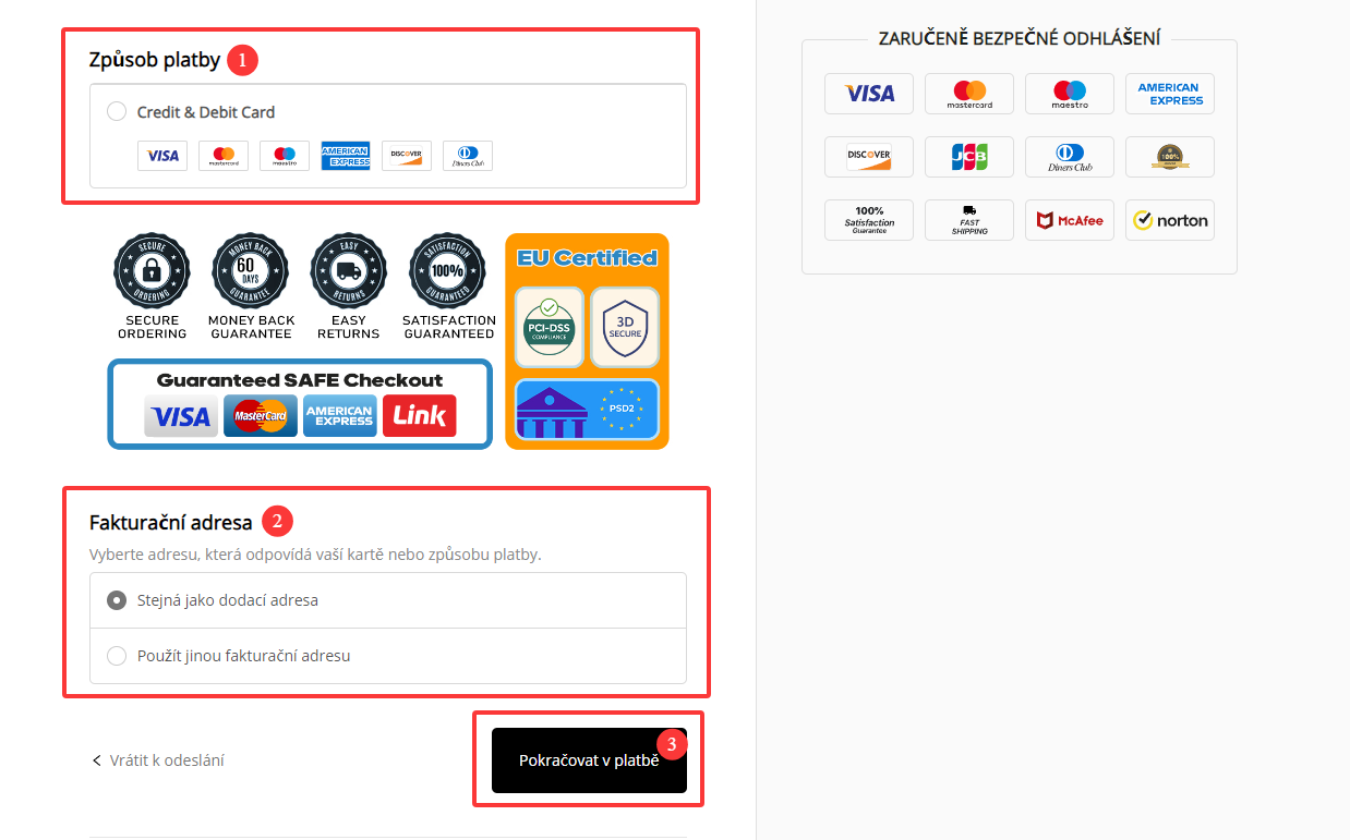 7. Vyberte použitý způsob platby a kliknutím na tlačítko Další dokončete platbu.